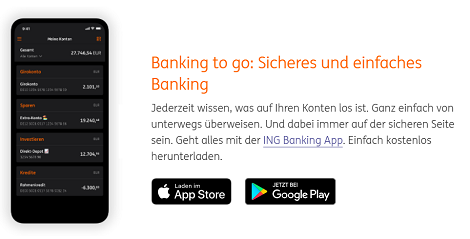Die ING ist eine reine Direktbank, das bedeutet, die Bank hat nur sehr wenige Filialen, in denen du dich auch nicht beraten lassen kannst. Sämtliche Angelegenheiten, wie der tägliche Zahlungsverkehr oder Fragen an den Kundenservice, sind demnach online zu erledigen. Doch das stellt in den meisten Fällen kein Problem dar, mit der ING Banking-to-go App oder klassisch im Internet Browser kannst du deine Zahlungen einfach vornehmen. Einzig die Einzahlung von Bargeld stellt oftmals ein Problem dar. Bei der ING kannst du dafür etwa die ING-eigenen Automaten oder die Reisebank benutzen.