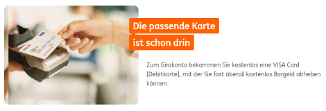 Auf Wunsch kannst du dir zu deinem Studenten Konto bei ING auch eine Girocard dazubuchen. Diese hieß frühe „EC-Karte“ und kostet 0,99 Euro pro Monat. Sie hat ein paar Vorteile gegenüber der VISA Card Debitkarte, die standardmäßig bei der Eröffnung des Studentenkontos bei ING dabei ist: