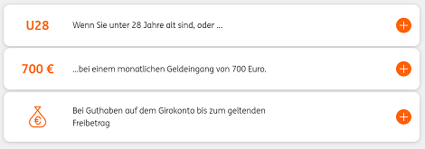 • Kein monatlicher Geldeingang erforderlich (wenn unter 28 Jahre)