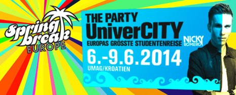 Bei der größten Studentenparty Europas warten vom 06.-09.06. in Umag (Kroatien) wieder viele tolle DJ’s (u.a. Nicky Romero, Martin Garrix, Mashup Germany), Chill-out-Areas und Contests auf dich.