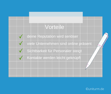 Da Personaler immer häufiger XING oder LinkedIn Profile durchstöbern, sollte man hier in jedem Falle seine virtuelle Visitenkarte hinterlassen.