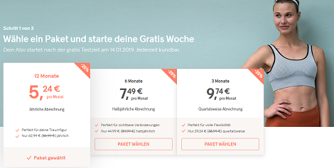 Gültig für Neukunden und nur für die erste Laufzeitperiode des gewählten Abonnement-Pakets. Du zahlst zunächst 59,88 € für die ersten 12 Monate des Gymondo Plus | 12 Monate Abos, danach verlängert sich dein Abo automatisch um 12 Monate für 119,99 €
