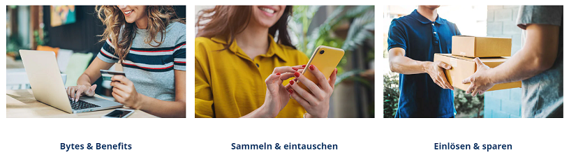 bei der Anmeldung zum Treueprogramm einmalig gratis Versand erhalten, bei jedem Einkauf Bytes sammeln, die gegen Rabatte eingelöst werden können