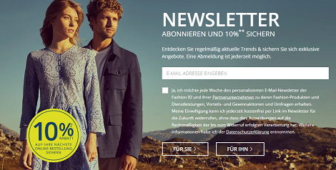 Meldest du dich für den Peek & Cloppenburg Newsletter an, so erhältst du nicht nur einen 10% Peek & Cloppenburg* Gutscheincode (einlösbar bis zu 30 Tage nach Anmeldung, Mindestbestellwert 60€), sondern auch regelmäßig Rabattcodes, Gewinnspiele und Fashiontipps.