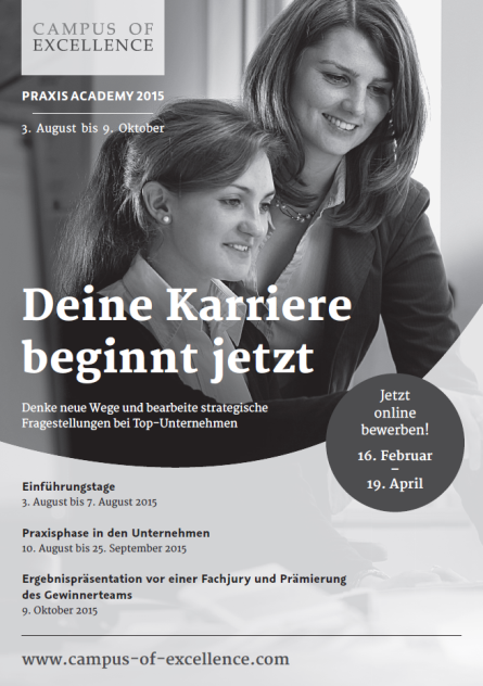 Hierbei handelt es sich um eine unabhängige Bildungsinitiative aus Deutschland. Hinter dem Projekt stehen mehr als 100 Förderer und Partner, zu denen u.a. Hochschulen, hochrangige Unternehmen und Institutionen zählen. Ziel ist es junge Menschen dahingehend zu fördern, dass diese ihre Talente, Potenziale und Fähigkeiten erkennen und ideal einsetzen und für die Karriereplanung nutzen. Als Zielgruppe gelten junge Menschen im Übergang von der Schule zu Ausbildung oder Studium. Die Teilnahme bei Campus of Excellence zeichnet sich aus durch ein starkes Netzwerk, individuelles Mentoring und fachliche Beratung.