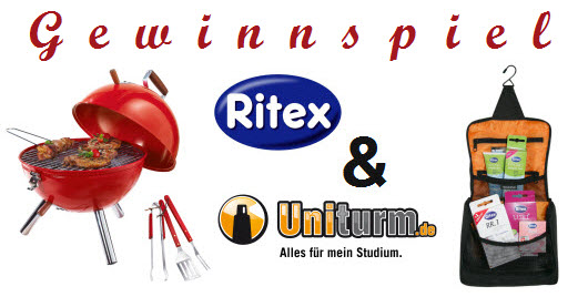 Damit das zum vollen Erfolg wird, heizen Uniturm.de und Ritex euch ordentlich ein. Denn es gibt heiße Preise zu gewinnen! Als Hauptgewinn winkt ein stylischer roter Mini-Grill inkl. Grillbesteck und falls die Party mal länger wird, verlosen wir zusätzlich 5 Übernachtungs-Kits von Ritex. Die Taschen enthalten u.a. Kondome (Ritex RR. 1 und Ritex LUST) und das neue Gleitgel Ritex Hydro Sensitiv Gel.