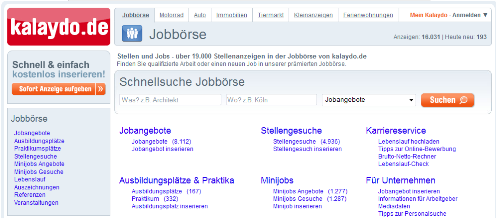 Eine gute Online Jobbörse ist beispielsweise Kalaydo, wo du aktuell über 19.000 Stellenangebote findest. Um dir die Suche zu vereinfachen kannst du dir die offenen Stellen nach Branche, Region sowie Kriterien wie z.B. Studentenjob, Aushilfsjob oder Praktika filtern zu lassen. Darüber hinaus hast du auch die Möglichkeit, hier direkt deinen Lebenslauf inkl. Bewerbungsbilder kostenlos hochzuladen. Die Arbeitgeber können sich so im Punkt „Stellengesuche“ direkt über dich und deine bisherigen Erfahrungen informieren.