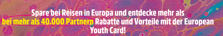 Die Europäische Jugendkarte ist das Produkt der European Youth Card Association (EYCA), einer NGO mit Sitz in Brüssel. Die EYCA arbeitet bereits seit 30 Jahren eng mit der EU zusammen und hat es sich zur Aufgabe gemacht, jungen Menschen den kulturellen Austausch durch die finanzielle Förderung von Mobilität und Reisen zu erleichtern. Zudem engagiert sich die EYCA in mehr als 30 Ländern auch aktiv im Bereich politische Bildung. Die Karte erfreut sich immer größerer Beliebtheit und zählt europaweit mittlerweile mehr als 8 Millionen Nutzer*innen. Als Inhaber einer Karte profitierst du von Discounts, Rabatten und Goodies bei mehr als 40.000 Partnern europaweit.