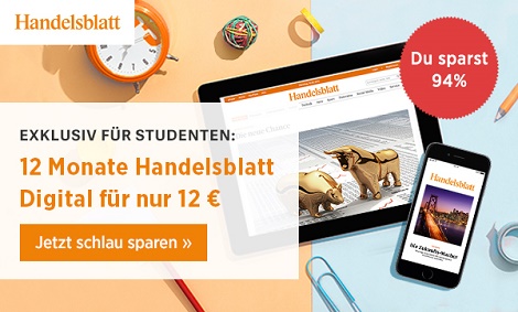 Aktuell bietet das Handelsblatt jedoch eine Exklusivaktion für Studenten: 12 Monate Handelsblatt lesen und nur 1 Monat (19,99 Euro) zahlen. Somit kannst du das Ganze entspannt und günstig testen bevor du dich zum regulären Preis für ein Handelsblatt Studenten Abo entscheidest.